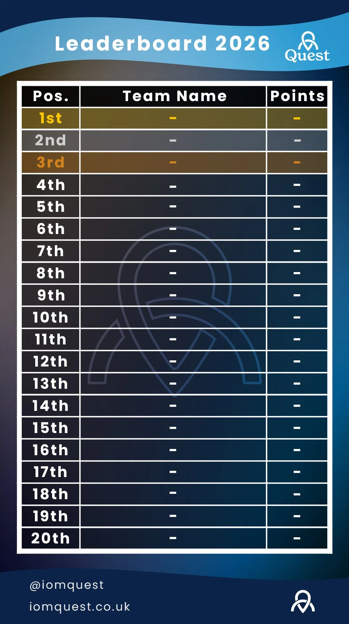 Every team that completes a Quest will be awarded points, with more points being awarded for higher placements.